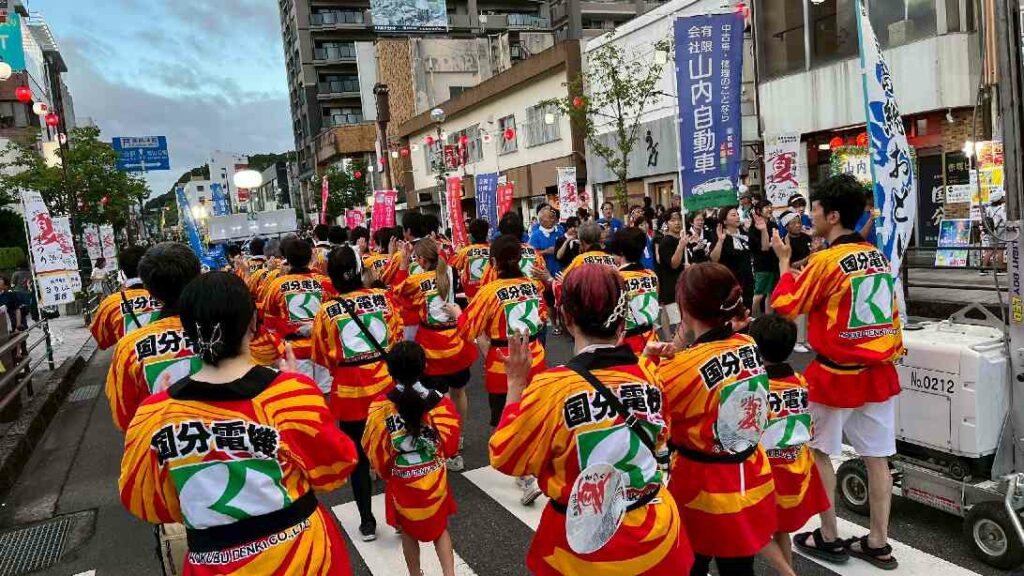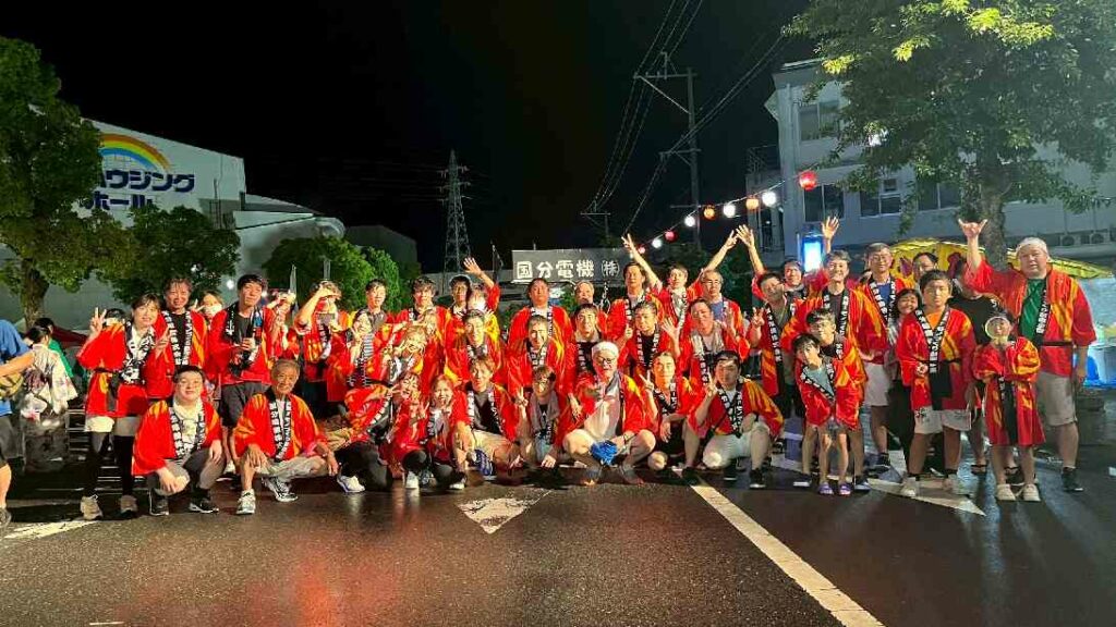 第61回霧島国分夏まつり 2025/10/2 どうも 互助会担当 M田です。 アップが遅れて申し訳ございません(/ω\) 2025年7月26日に行われた霧島総踊りに参加しました。 今回は 6000名の踊り連でしたのでとにかく 熱い・・・・・ 生演奏に合わせ 2時間 何とか踊り切りました(=゚ω゚)ノ 無事に 21:00終了~~~~ はいっ(*ノωノ)チーズ